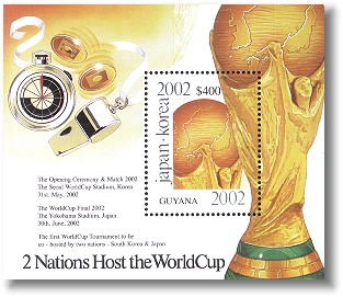 ![]() 2 Nations Host Stamp! Buy this magnificent postage stamp made in honor of the world's leading soccer event which is being co-hosted in Korea and Japan in the summer of 2002. This beautiful stamp is a true collector's item! USD $9.95 Add 2 Cart |
