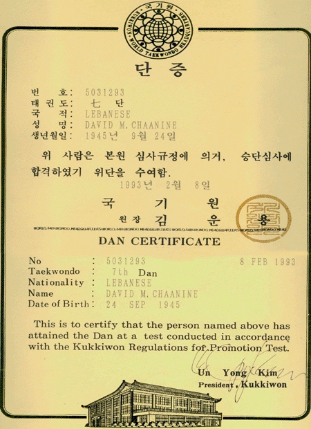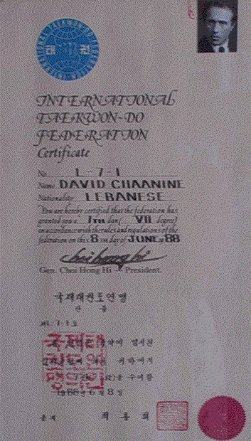 From 1968 to 1976, Grandmaster Chaanine promoted Taekwon-Do in Lebanon. At
