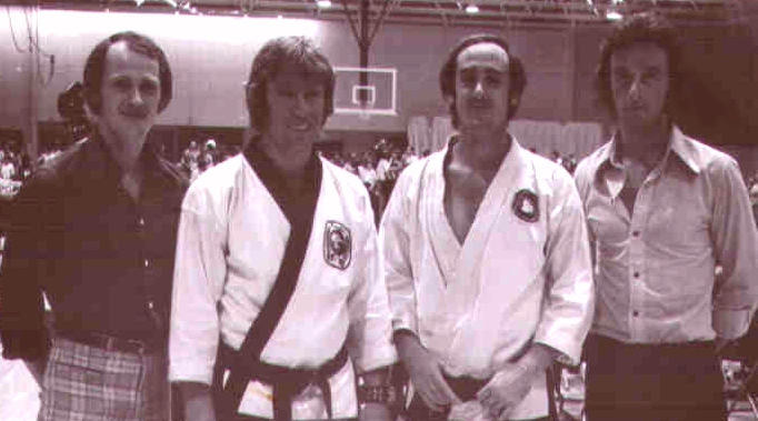 Canada's Ray Nikiel (far left) and Daniel Richer (far right) take a moment from activities to relax with Chuck Norris and Pat Worley.