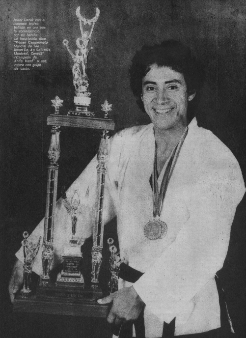 Taekwon-do at 16 years of age under Master Won Bok Lee, the founder of Taekwondo in Paraguay. One of the greatest moments of his career was having become the world champion of power breaking at the First World Championships of Taekwon-Do (ITF) which were held in Canada in 1974. Javier topped this feat in 1978 when he won 1st place again in the breaking division at the Second World Championship of Taekwon-Do (ITF) in Oklahoma City, USA. He won that event by breaking six boards which were not spaced. What made his feat most spectacular was that this was the first time anyone had broken six boards, with Javier did so with a badly injured hand. He was also responsible for increasing the popularity of Taekwon-do in the country of Argentina when he organized the 3rd World Championship of Taekwon-do (ITF) in 1981. This was the first time that a Taekwon-do event of such magnitude had been held in Argentina and South America. Today Javier proudly serves as President of the Taekwon-do Federation (ITF) of Paraguay. |