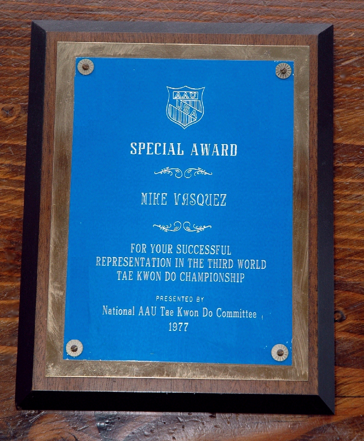 1977 Presented Special award by National AAU Tae Kwon Do Committee