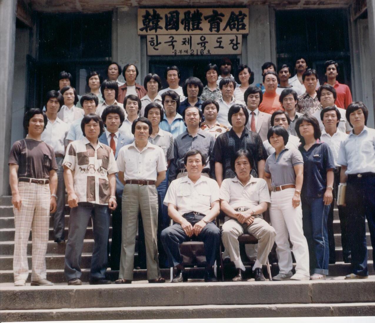 GM Chong Woo Lee (seated left), and others at Hankuk Chaeyuk Dojang ( Korea Sports Dojang) AKA Seoul Jidokwan